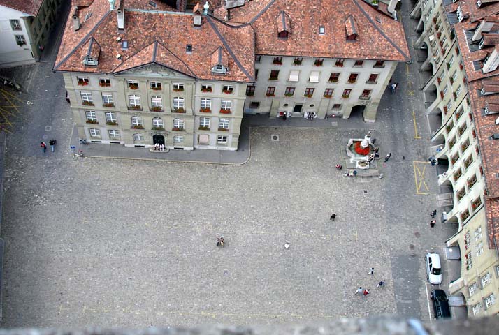 Visite de Berne : Dimanche, la ville est quasiment déserte. Nous posons les motos à l'entrée de la Münstergasse et nous dirigeons vers la cathédrale St Vincent que nous visitons; nous grimpons même tout en haut du clocher d'où l'on a une très jolie vue sur les toits et sur l'Aare. Nous allons ensuite voir la Bärengraben (la vraie) très décevante, puis retour par la Kramgasse - un petit coucou à la maison d'Einstein au numéro 49/2ème étage) - et, pour terminer, visite à la Zeitglockenturm (la tour de l'horloge) qui malheureusement ne fonctionne pas ce jour là! Un sandwich sur la Kornhausplatz au pied de la fontaine de l'ogre et nous reprenons les motos , direction Neuchâtel.
