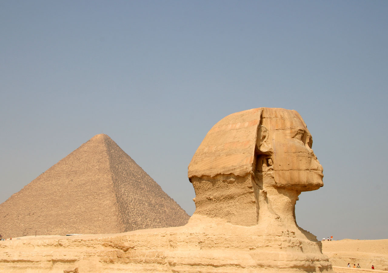 Hugo prend la mesure de la pyramide de Khéphren (143.5 m)